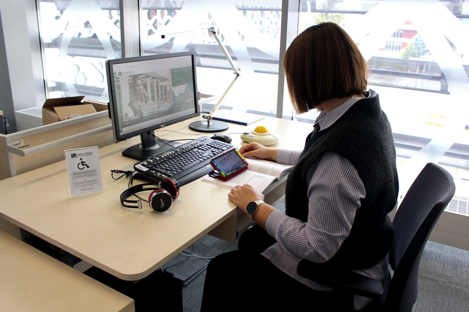 - stanowisko komputerowe w Czytelni Książek, poziom P1/21, ze specjalistycznym oprogramowaniem: