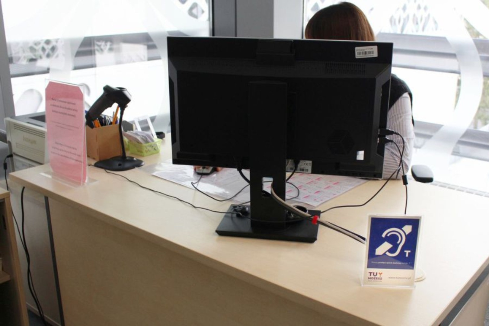 - pętle indukcyjne do obsługi osób z zaburzeniami słuchu, posługującymi się aparatami słuchowymi, zainstalowane przy stanowiskach obsługi czytelnika w Wypożyczalni Ogólnej (Poziom P0), Oddziale Informacji Naukowej (Poziom P0), Czytelni Książek (Poziom P1) oraz w bibliotekach wydziałowych,