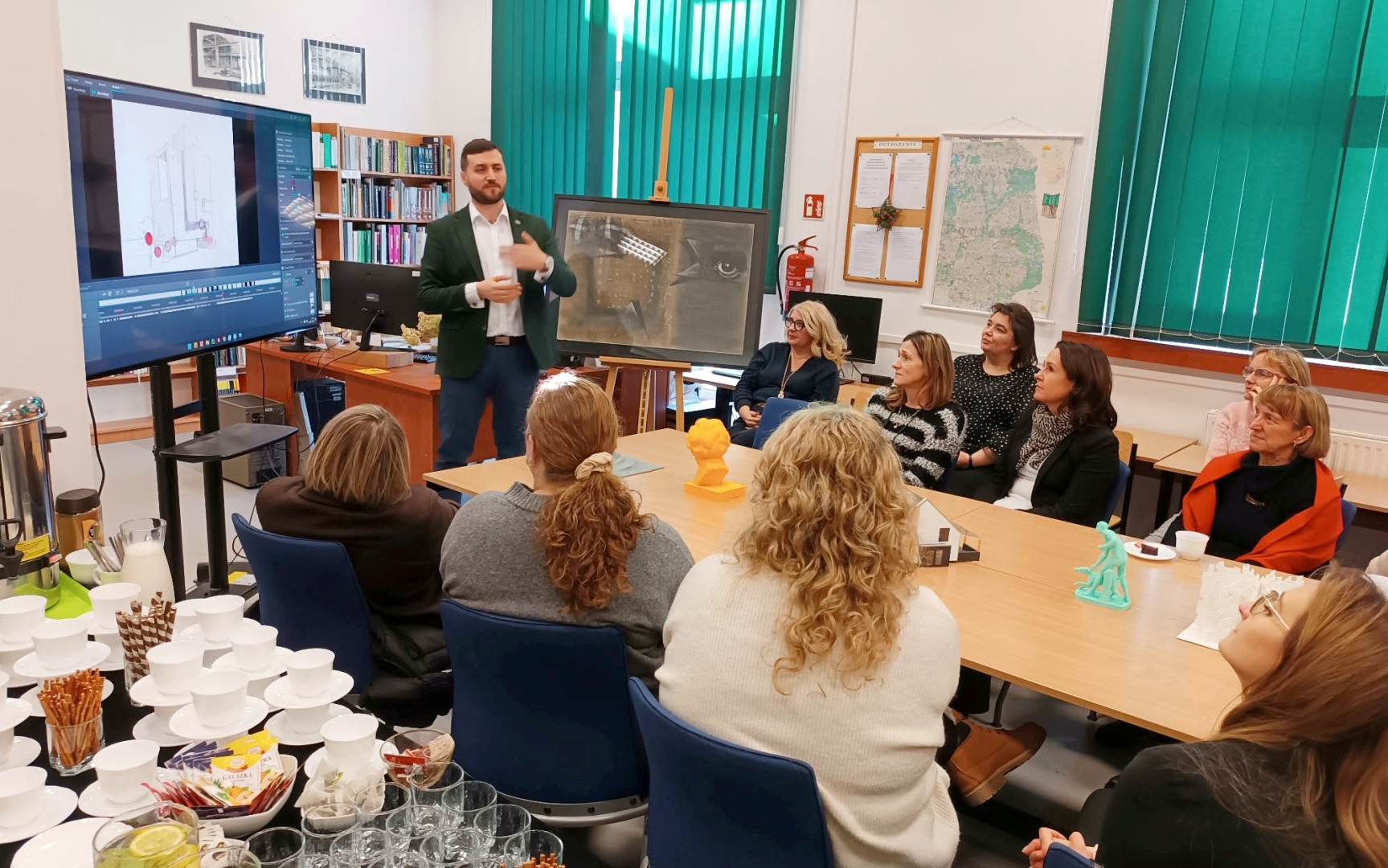 Spotkanie zorganizowane w Bibliotece Wydziału Architektury było też okazją do zwiedzenia artystycznej przestrzeni wydziału, który w 2025 roku świętował 50-lecie powstania.