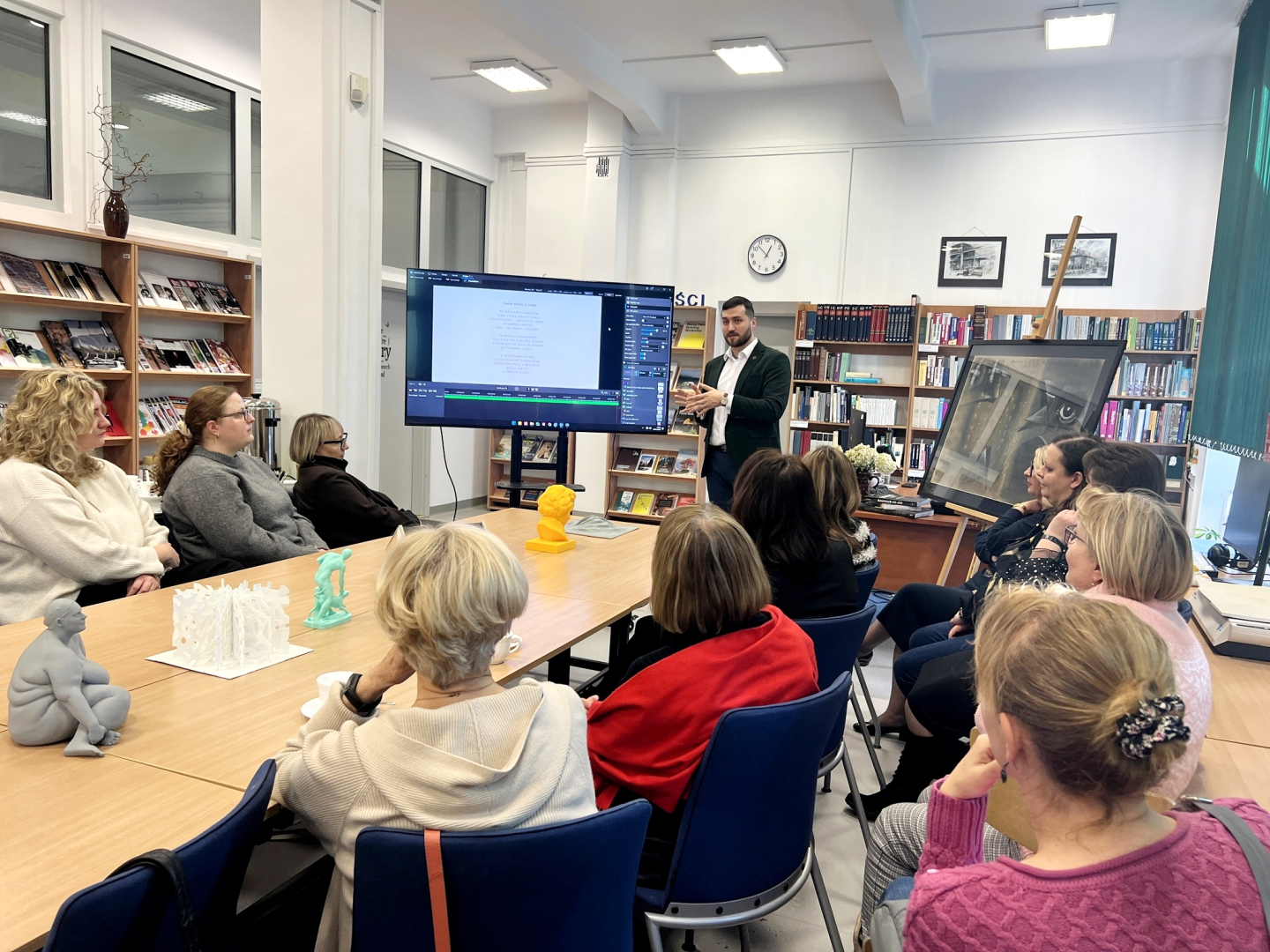 Prezentację zakończyła sesja pytań i odpowiedzi. Uczestnicy spotkania wspólnie zastanawiali się nad możliwościami wykorzystania badań okulograficznych w bibliotekoznawstwie i dziedzinach pokrewnych, m.in. w projektowaniu przestrzeni bibliotecznych, okładek książek czy stron internetowych bibliotek. Spotkanie pozwoliło lepiej zrozumieć znaczenie badań ruchu gałek ocznych oraz uświadomiło uczestnikom szerokie spektrum możliwości ich zastosowania we współczesnym świecie.