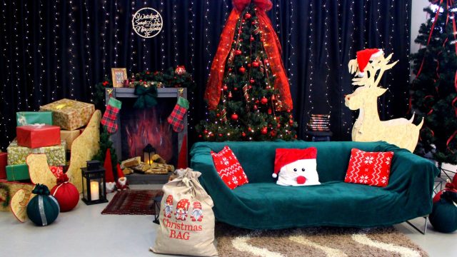 Nasza świąteczna ścianka to prawdziwa bożonarodzeniowa pocztówka. Głębię zimowej nocy rozświetla kominek, przystrojone w królewską czerwień choinki uginają się pod ciężarem wstęg, kokard i bombek, światełka lśnią jasnym blaskiem Świąt Bożego Narodzenia, miękka kanapa czeka na wędrowców, spragnionych wytchnienia, odpoczynku, poszukujących świątecznej magii.